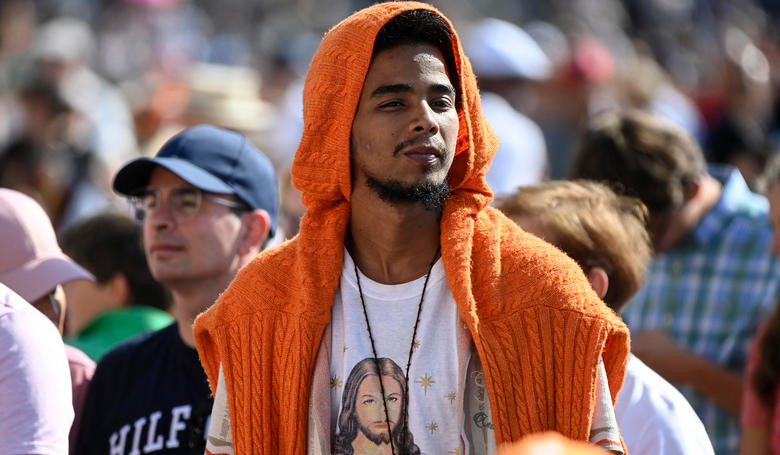 Jeden z pútnikov počúvajúci so záujmom slová Svätého Otca. Snímka: profimedia.sk