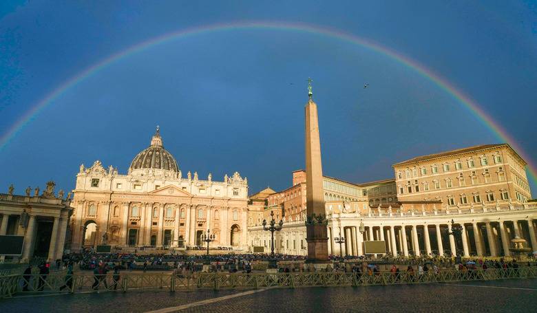 Účastníkov audiencie tentoraz potešila krásna dúha, ktorá je znakom nádeje. Snímka: profimedia.sk