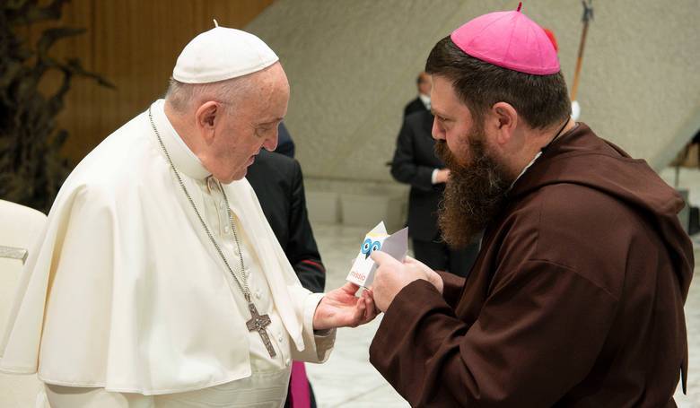 Počas generálnej audiencie osobne pozdravil Svätého Otca aj reykjavícky biskup Dávid Tencer, OFMCap, ktorý pochádza zo Slovenska. Snímka: profimedia.sk