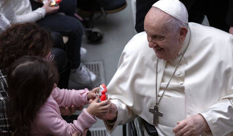 Na audienciách počas Vianočného obdobia pápež rozdával deťom čokoládové figúrky. Snímka: profimedia.sk