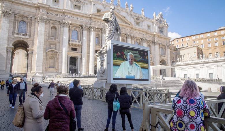 V nedeľu 8. marca sa Svätý Otec František prihovoril veriacim mimoriadne nie z okna Apoštolského paláca, ale zo Sály bibliotéky cez televízny prenos, ktorý mohli sledovať na veľkoplošných obrazovkách.