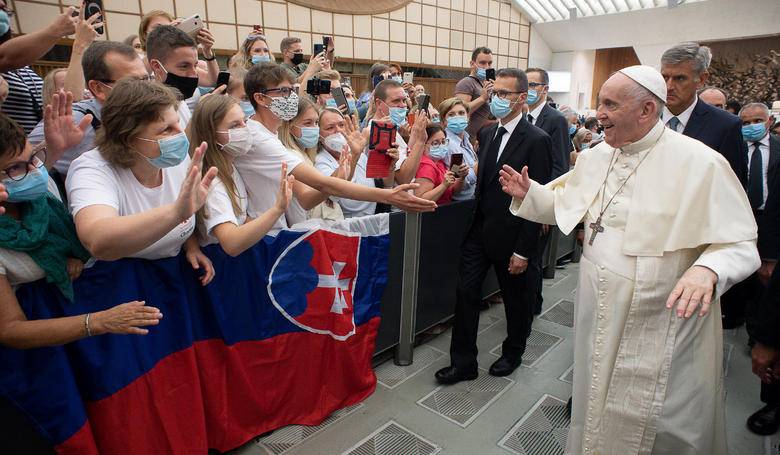 Na generálnej audiencii sa zúčastnili aj slovenskí pútnici, ktorí sa s pápežom Františkom veľmi vrúcne pozdravili. Snímka: profimedia.sk