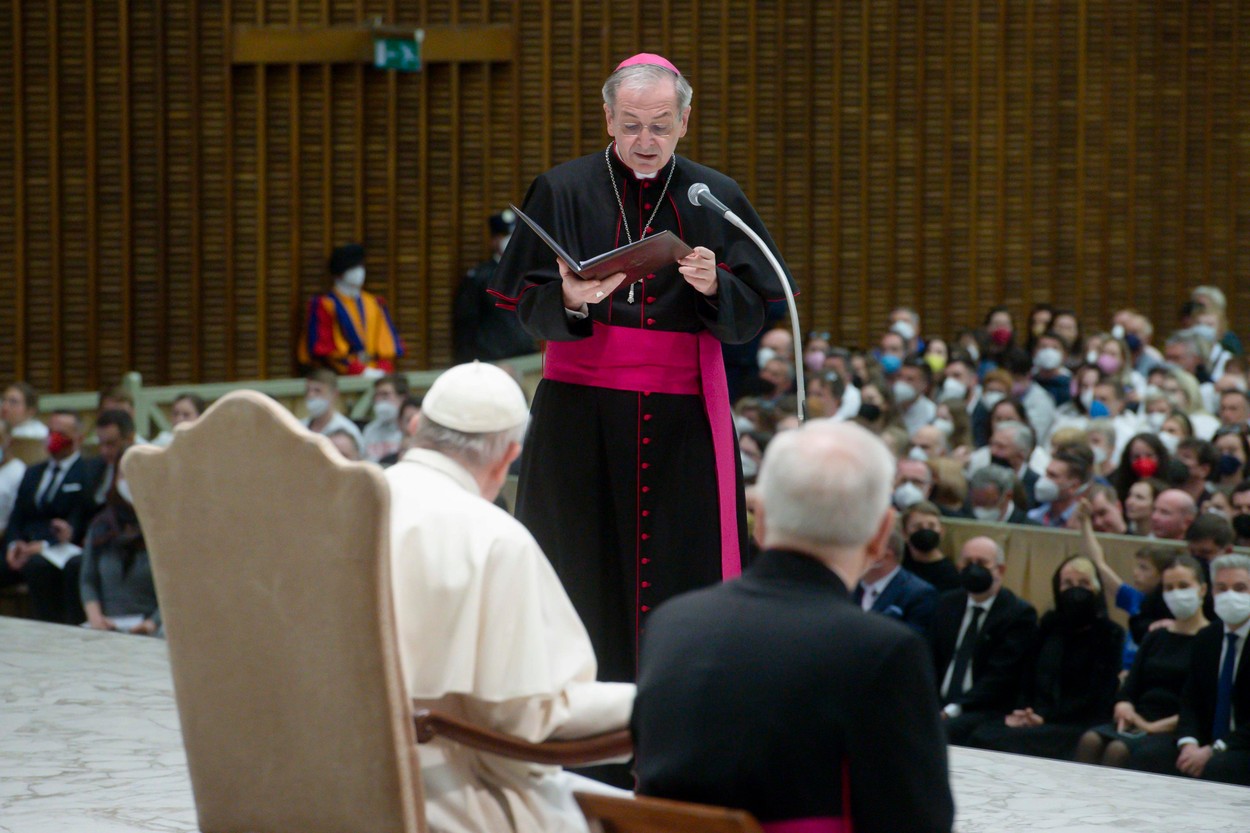 V týchto mesiacoch mnohé vaše rodiny, farnosti a inštitúcie prijali pod svoju strechu matky s deťmi z ukrajinských rodín, ktoré sa museli rozdeliť, aby sa zachránili, a ktoré prišli so svojou chudobnou batožinou. Pri pohľade do ich očí ste svedkami toho, ako vojna pácha násilie na rodinných väzbách, oberá deti o prítomnosť otca, o školu a starých rodičov necháva opustených.