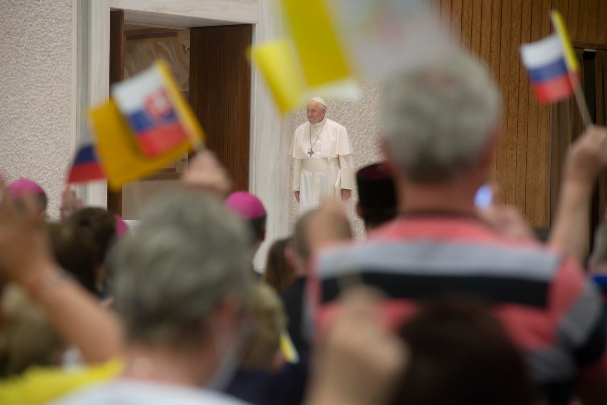 „Dnes ste sa sem prišli v hojnom počte poďakovať, ale uvedomil som si, že slovenskí pútnici radi prichádzajú do Ríma, vidím to na generálnych audienciách. Váš ľud je veľmi spätý so sídlom svätých Petra a Pavla,“ zdôraznil Svätý Otec a dodal: