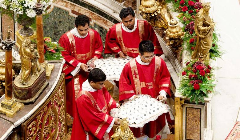 Svätý Otec už tradične na slávnosť sv. Petra a Pavla odovzdal páliá novým arcibiskupom metropolitom ako znak ich hodnosti a symbol pastierskeho poslania. Snímka: profimedia.sk