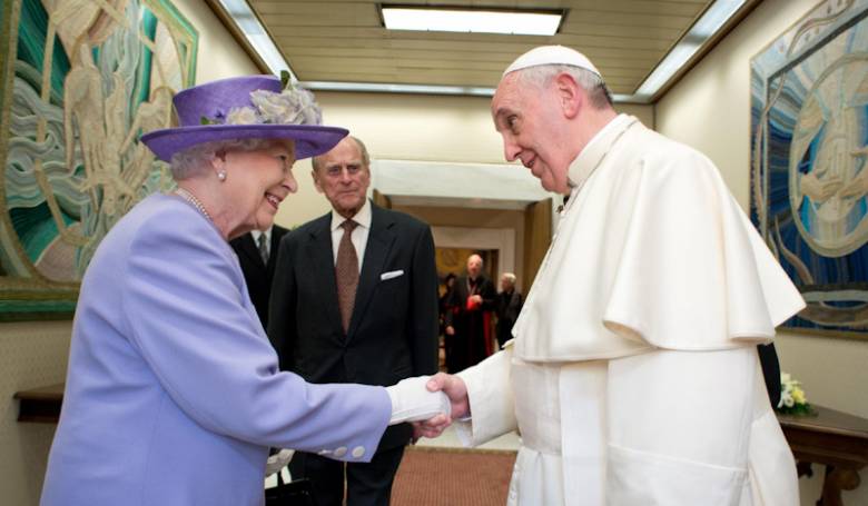 Svätý Otec František bol jeden zo štyroch pontifikov, ktorých Alžbeta II. počas svojho panovania osobne stretla. Anglická kráľovná prišla v roku 2014 spolu so svojím manželom princom Philipom, vojvodom z Edinburghu, do Vatikánu. Svätý Otec ich prijal 3. apríla. V súkromnom rozhovore strávili 20 minút. Stretnutie sa uskutočnilo pri príležitosti 100. výročia obnovenia diplomatických vzťahov medzi Spojeným kráľovstvom a Svätou stolicou.