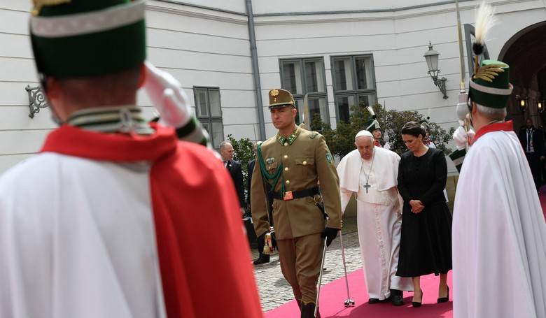 Boh vo vhodnom čase spája a posilňuje tých, ktorí veria v silu lásky, spojenia a mieru,“ privítala Svätého Otca prezidentka Katalin Nováková.