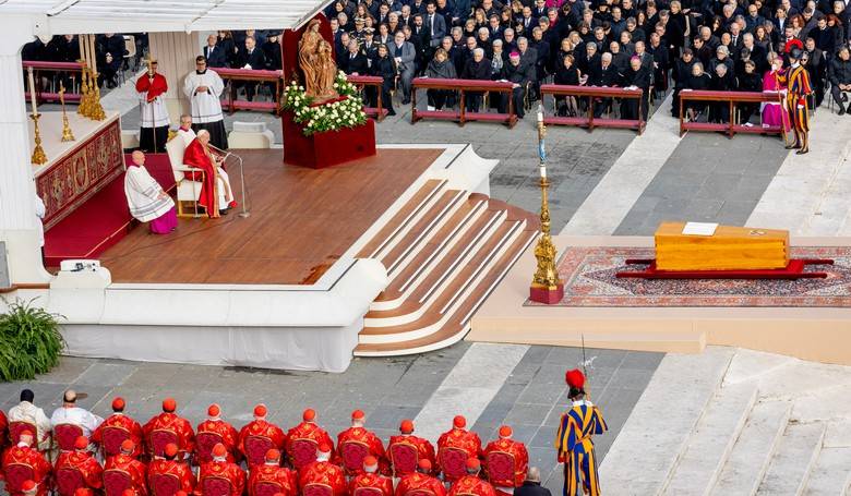 Na pohrebnej svätej omši, ktorej predsedal pápež František, sa zúčastnilo okolo 50-tisíc veriacich. Snímka: profimedia.sk