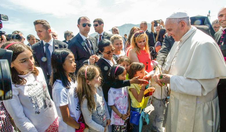 V roku 2016 prišiel pápež František medzi utečencov na ostrove Lesbos. Začiatkom decembra zavíta na grécky ostrov opäť. Snímka: profimedia.sk