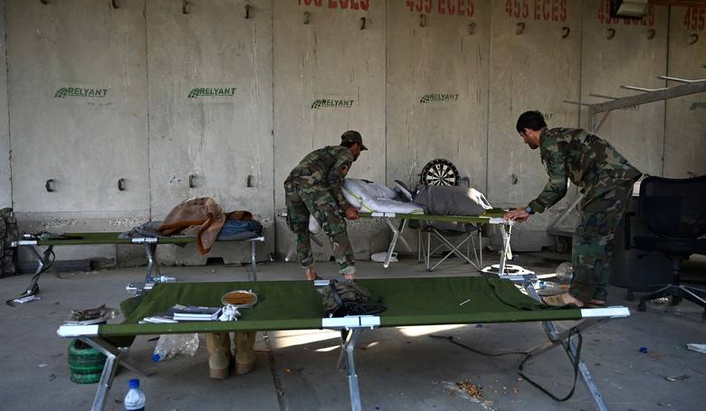 Na snímke sú vojaci afganskej národnej armády na bývalej americkej leteckej základni Bagram po tom, čo odtiaľ v júli odišli jednotky USA a NATO. Vojská západného sveta by sa mali definitívne stiahnuť z Afganistanu 11. septembra. Snímka: profimedia.sk