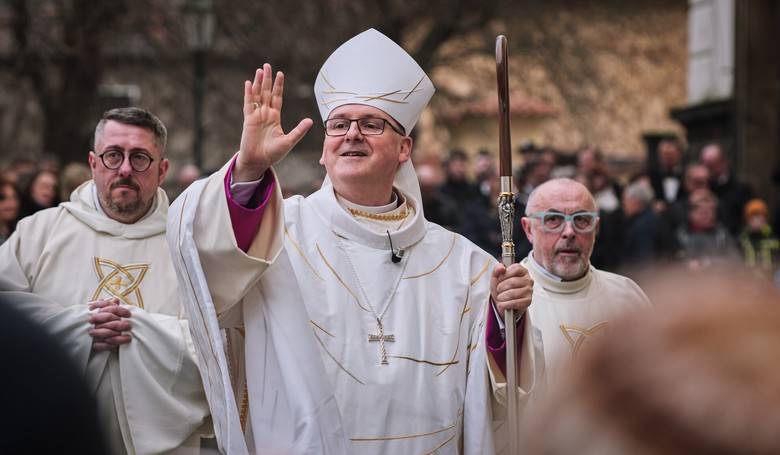 Nový litoměřický biskup po vysviacke pozdravil zhromaždených veriacich. SNÍMKA: ČLOVEK A VIERA/JIŘÍ VOPÁLENSKÝ