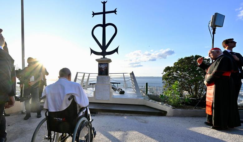 Po stretnutí s klérom sa pri neďalekom pamätníku utopených námorníkov a migrantov stretol na modlitbe s náboženskými predstaviteľmi v Marseille.