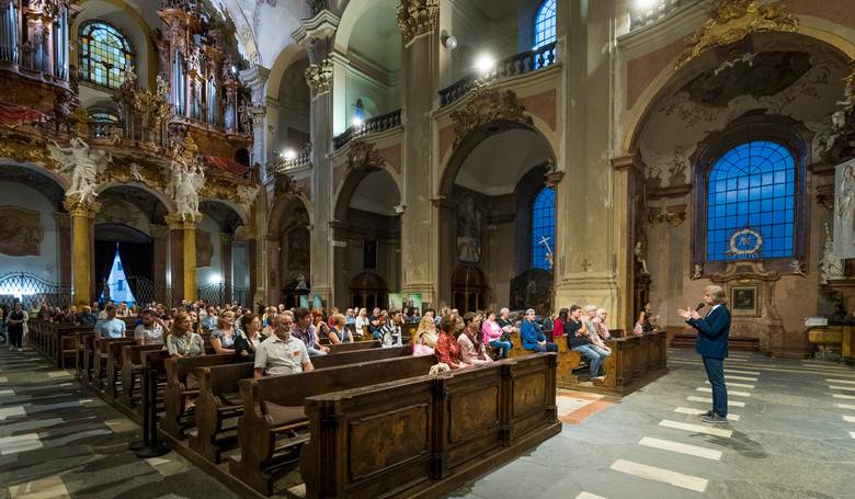 Kostol Panny Márie Snežnej v Olomouci mal počas noci takisto vysokú návštevnosť, okrem iného aj v rámci prehliadky pre deti. Snímka: Človek a Viera/Pavel Langer