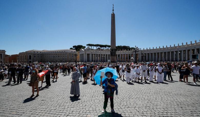 Na Námestí sv. Petra pomaly pribúdajú veriaci na pravidelnej nedeľnej modlitbe Anjel Pána so Svätým Otcom. Snímka: profimedia.sk