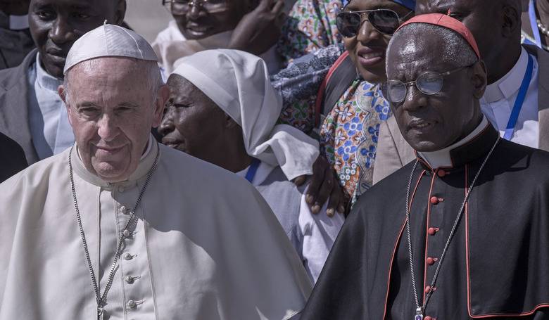 Pápež František s Robertom Sarahom, ktorý je jedným z piatich kardinálov adresujúcich pred synodou dubiá Svätému Otcovi. Snímka: profimedia.sk