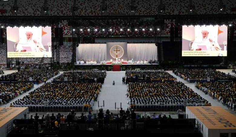 Svätá omša so Svätým Otcom na Národnom štadióne v Singapure. Snímka: profimedia.sk