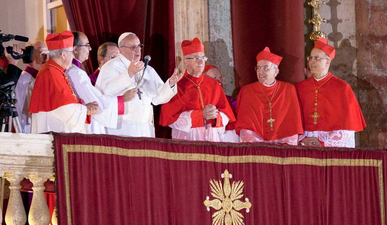 Kardinál Jorge Mario Bergoglio si vybral meno František. Stal sa prvým pápežom jezuitom a po takmer 200 rokoch prvým rehoľníkom na svätopeterskom stolci. Po trinástich storočiach sa stal pápežom Neeurópan a po prvý raz v dejinách kardinál z Južnej Ameriky.