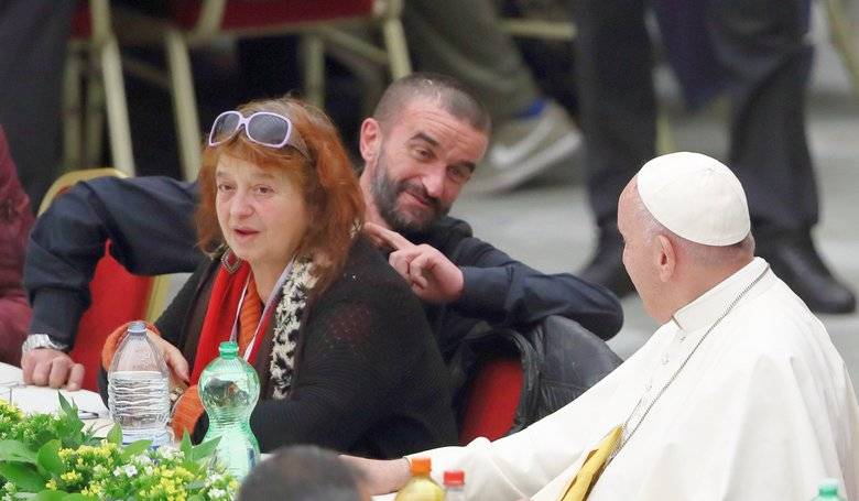 Svätý Otec František obedoval s 1 500 núdznymi v Aule Pavla VI. Snímka: profimedia.sk