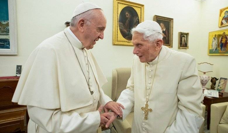 Fotografia z návštevy Svätého Otca Františka u emeritného pápeža Benedikta XVI. pred Vianocami v roku 2018. Snímka: profimedia.sk