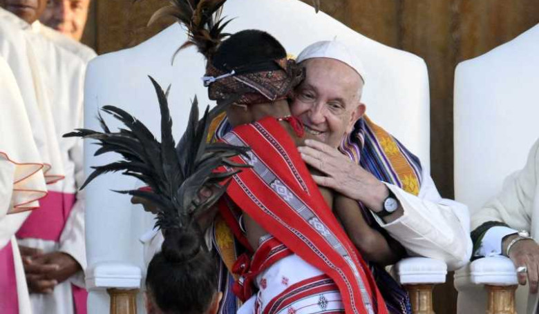 František dostal od detí tradičný timorský šál. Snímka: profimedia.sk
