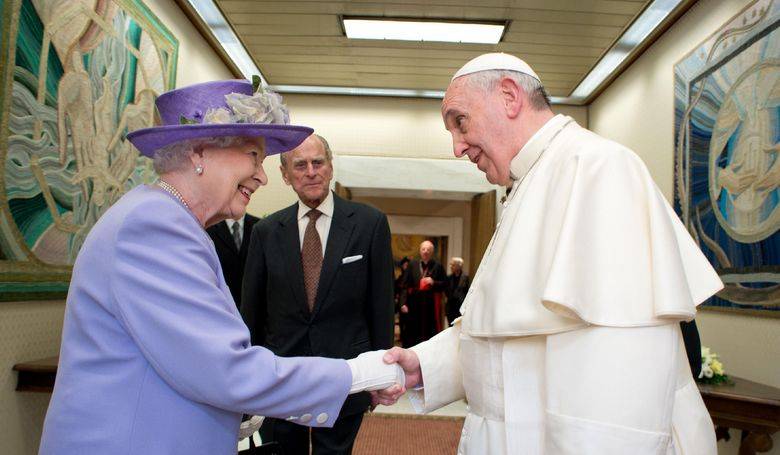Pápež Benedikt XVI. kráľovnú navštívil v roku 2010 v Edinburghu. A napokon za pápežom Františkom prišli spolu s princom Philipom v roku 2014. Stalo sa tak pri príležitosti 100. výročia obnovenia diplomatických vzťahov medzi Spojeným kráľovstvom a Svätou stolicou.