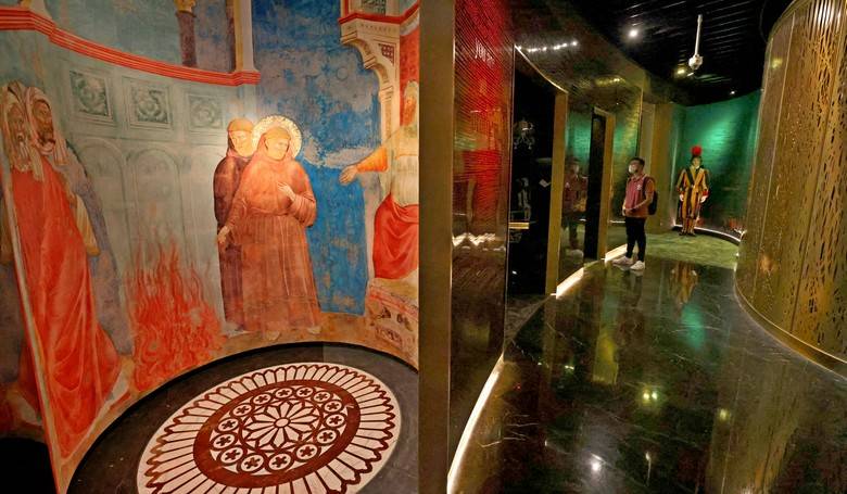 Súčasťou výstavy je i reprodukcia Giottovej fresky z Assisi, ktorá zobrazuje stretnutie sv. Františka s egyptským sultánom. Snímka: profimedia.sk