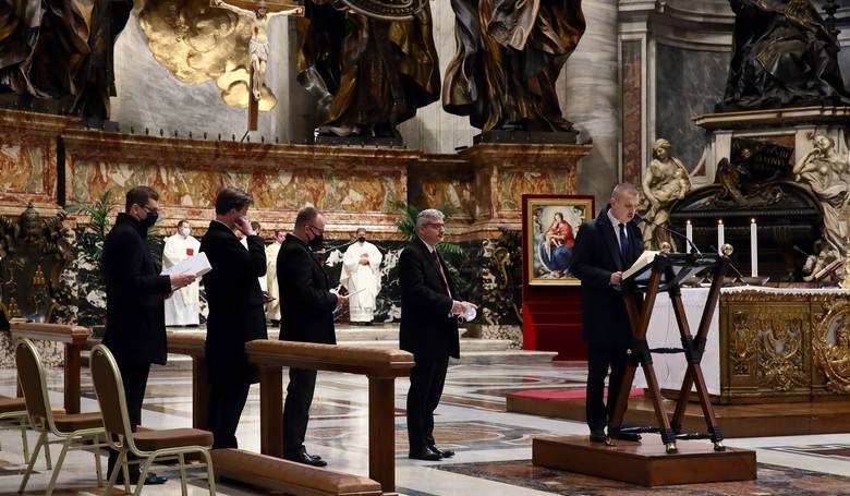 Štvorica veľvyslancov zastupujúcich pri Svätej stolici krajiny V4 si 15. februára pripomenula 30. výročie založenia Vyšehradskej skupiny svätou omšou v Bazilike sv. Petra vo Vatikáne. Snímka: profimedia.sk