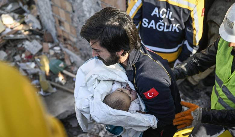 Dieťa Aliye Dagli z tureckej provincie Hatay sa podarilo zachrániť z trosiek zrútenej budovy 11. februára – 133 hodín po zemetraseniach. Každým dňom sa šance na prežitie v zničených budovách aj pre pretrvávajúce mrazy rapídne znižujú. Snímka: profimedia.sk