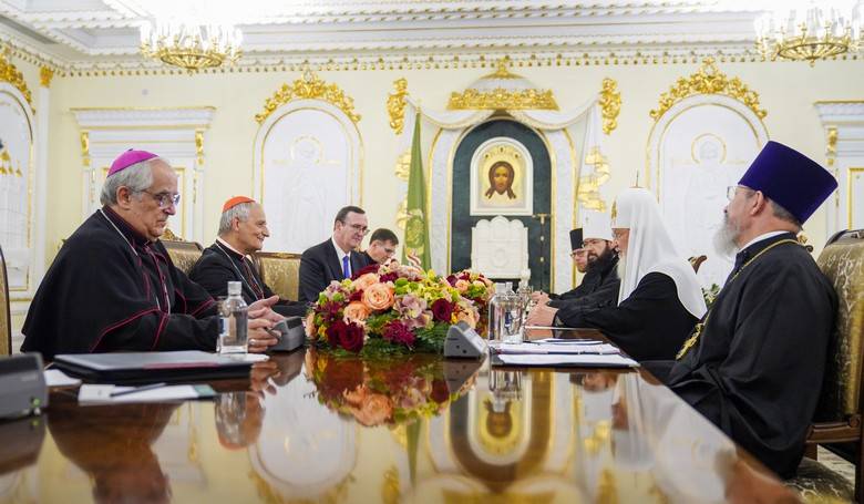 Kardinál sa rozprával aj s pravoslávnym patriarchom Kirillom, ktorý po prvý raz prijal priameho predstaviteľa pápeža od vypuknutia vojny. V prítomnosti prekladateľa, patriarchových spolupracovníkov a nuncia Giovanniho D’Aniella diskutovali o dôležitosti „zjednotenia všetkých síl sveta s cieľom zabrániť veľkému ozbrojenému konfliktu“.