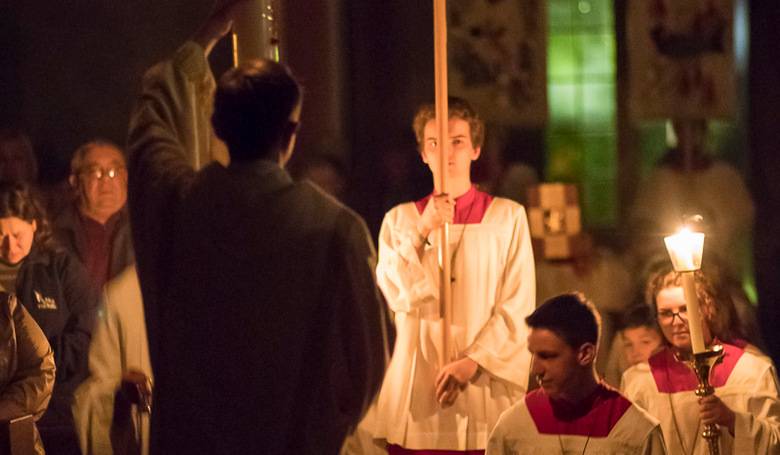 Veľkonočná vigília sa môže začať sláviť až po západe slnka. Tma je jej nevyhnutnou súčasťou, pretože Kristov príchod tmu rozptyľuje.