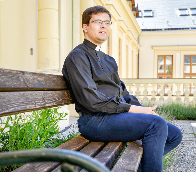 Budúci kňaz chce ľuďom odovzdať nie príbeh o svojej chorobe, ale Krista. „Skúsenosť bolesti môže byť prostriedkom, ale nemá byť cieľom," konštatuje Róbert Holečka. Snímka: Erika Litváková