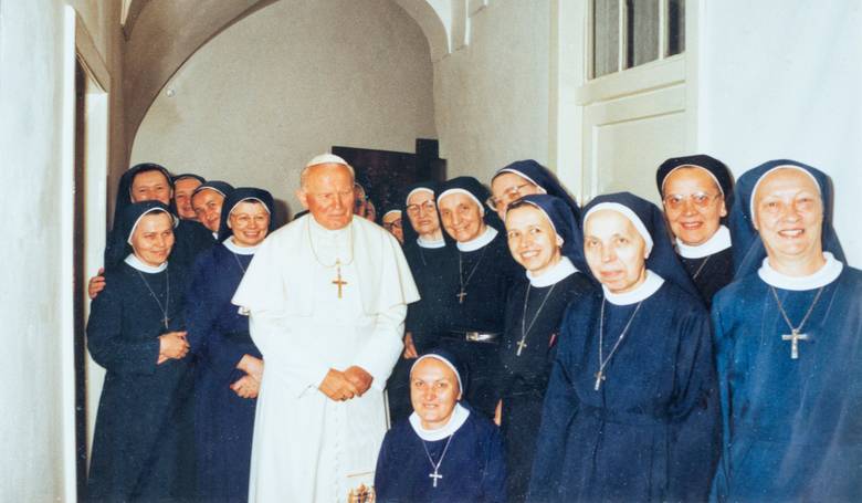 Ján Pavol II. s bratislavskými sestrami uršulínkami v roku 1995. Snímka: archív uršulínok