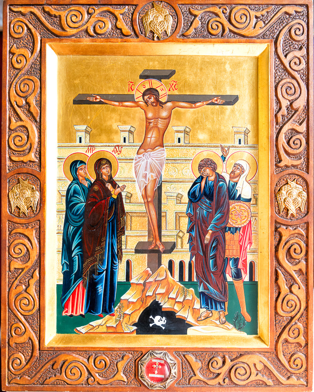 Katedrálny Chrám Povýšenia vznešeného aživotodarného kríža vBratislave, ktorý je v správe Gréckokatolíckej cirkvi, sa nachádza na Ondrejskom cintoríne. V predsieni chrámu je v nike umiestnená ikona Ukrižovanie nášho Pána Ježiša Krista. Jej autorkou je Angelika Birošová Nedoroščíková z Prešova. Ide o ručne písanú pozlátenú ikonu na plátne a dreve, vyhotovenú vaječnou temperou podľa tradičnej ikonopiseckej techniky. Na drevenom ráme po bokoch ikony a v jej hornej časti sú zobrazení traja šestorokrídli anjeli. V spodnej časti dreveného rámu sú uložené pravé relikvie Svätého kríža. Ikona bola inštalovaná počas odpustovej slávnosti sviatku Povýšenia úctyhodného a životodarného kríža nad celým svetom v septembri roku 2008. Na verejnú úctu býva vystavená každý rok na chrámový sviatok, ako aj počas svätej štyridsiatnice na krížupoklonnú nedeľu.