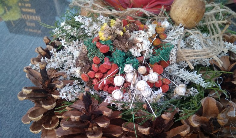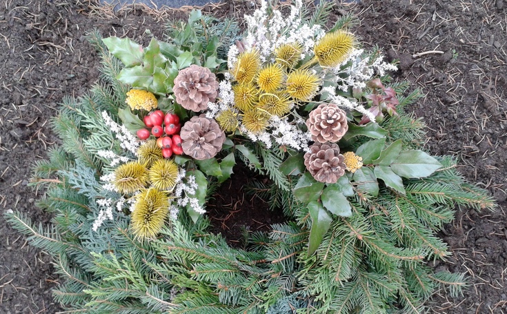 Ihličnaté vetvičky, jesenné plody, farebné listy, mach, sušené kvety, šišky, rôzne dreviny, trávy i črepníkové chryzantémy vydržia čerstvé niekedy rovnako dlho ako ich umelé atrapy. Slnko ich nevyťahá, dážď z nich krásu nevymyje. Na vonkajšie, i chladné prostredie sú zvyknuté. Nehýria cirkusovými farbami, na jesenný cintorín však zapadnú o čosi viac.